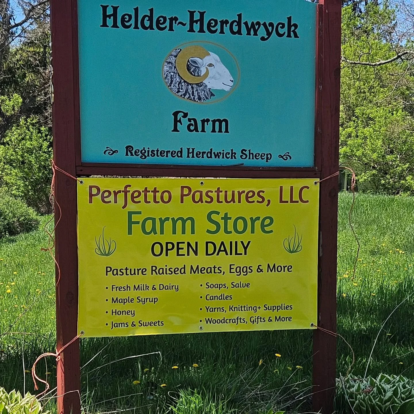 We have a wide selection of farm fresh Perfetto Pastures eggs, pork, poultry, Helder-Herdwyck Farm lamb, mutton and wool that are produced right on propery. In addition we offer locally sourced milk, honey, maple and other quality products available for purchase on site.